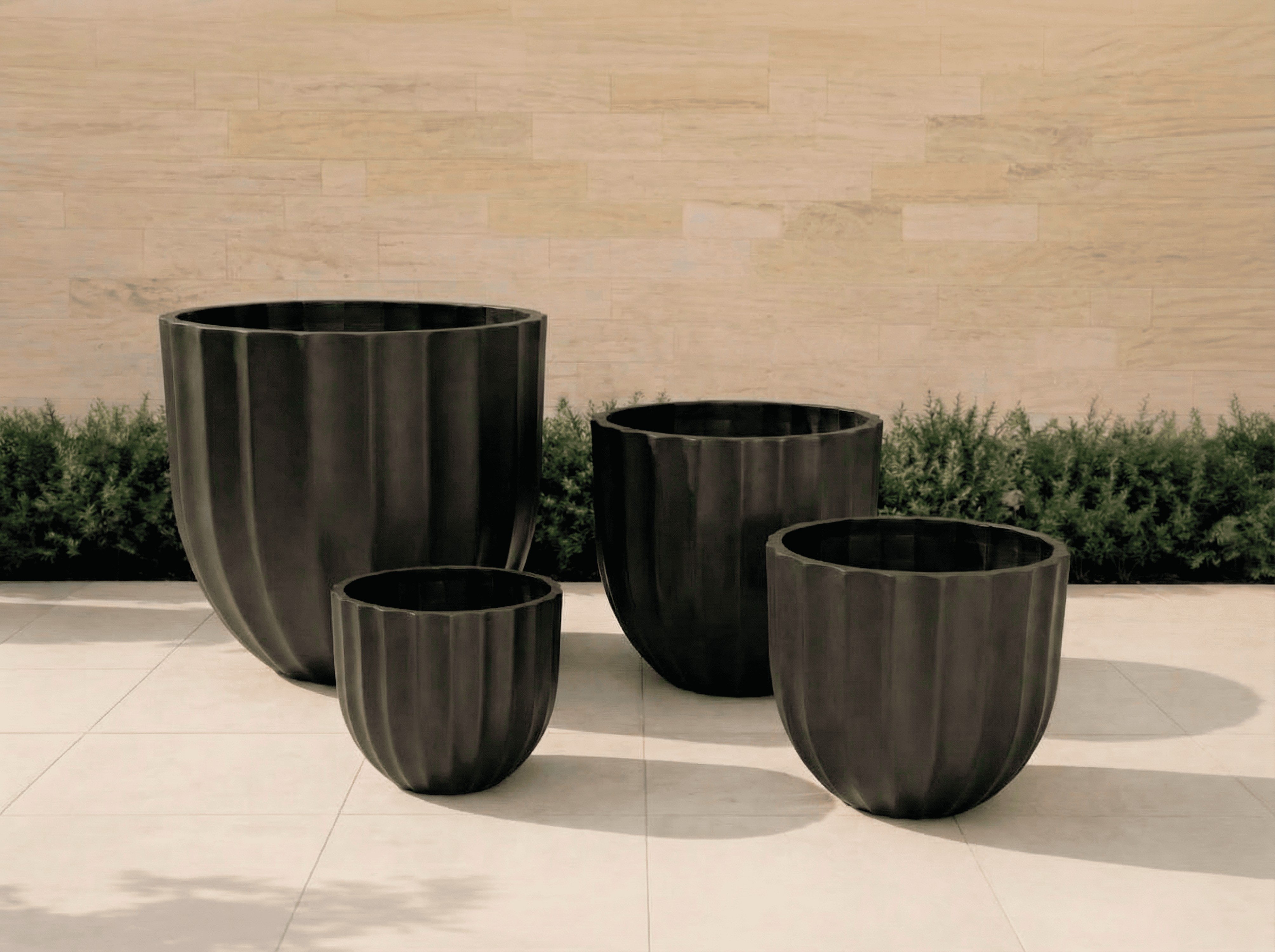 The all weather IAP containers combine natural and synthetic materials to create lightweight, sculptural forms that can be used both indoors and out. Carefully made by hand, each piece is constructed from a fiberglass shell with a natural metal finish applied over the top. They are then hand polished (Bronze, Copper, Cast Iron, Matte Black and Stainless Steel) to achieve a rich, dimensional surface that will either patina over time or take on a matte finish, depending on the salt content of the air. Ideally suited for commercial applications and are legendary for a long life cycle. All other finishes are marine grade which have superior UV and scratch resistance.