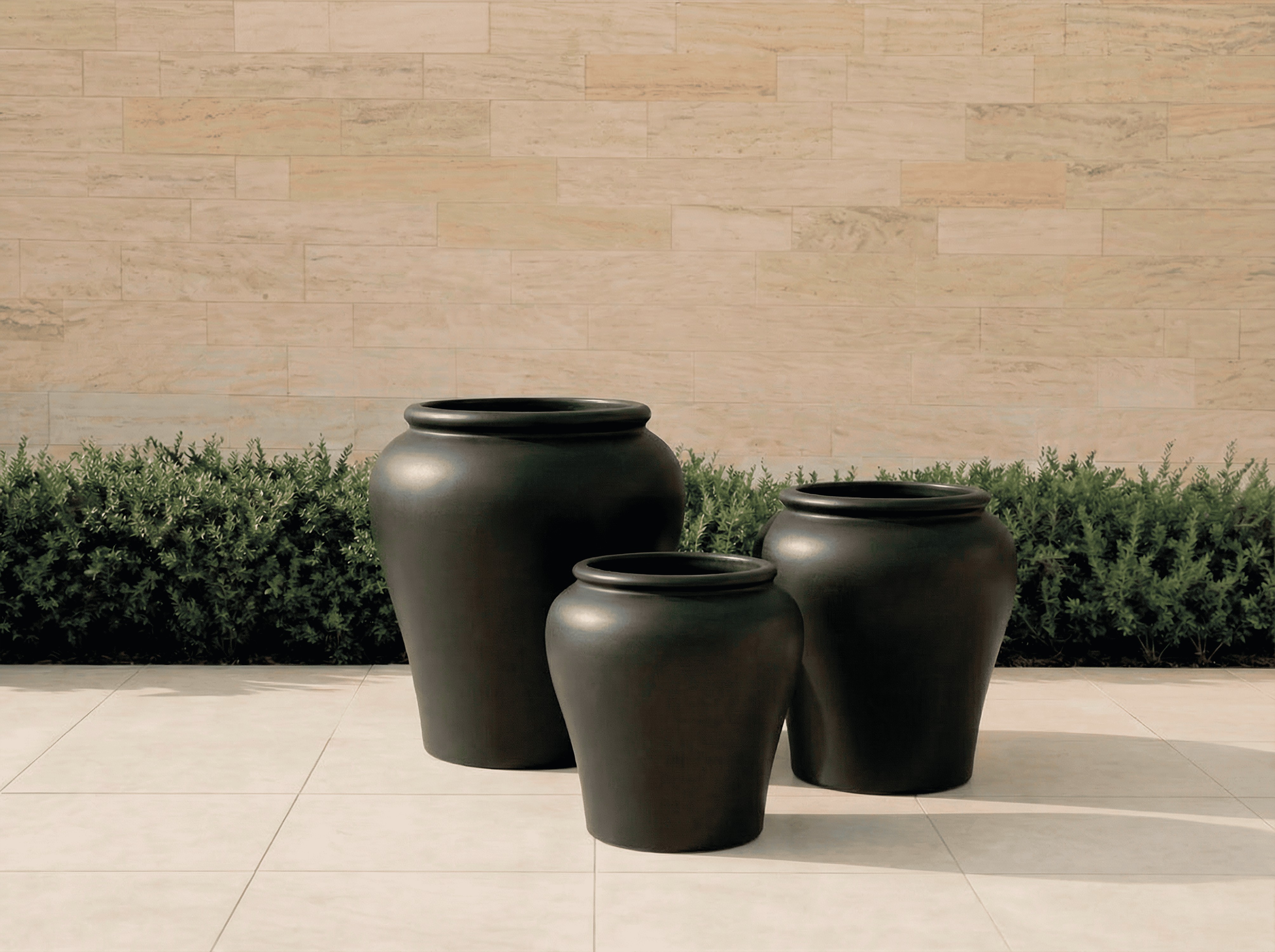 The all weather IAP containers combine natural and synthetic materials to create lightweight, sculptural forms that can be used both indoors and out. Carefully made by hand, each piece is constructed from a fiberglass shell with a natural metal finish applied over the top. They are then hand polished (Bronze, Copper, Cast Iron, Matte Black and Stainless Steel) to achieve a rich, dimensional surface that will either patina over time or take on a matte finish, depending on the salt content of the air. Ideally suited for commercial applications and are legendary for a long life cycle. All other finishes are marine grade which have superior UV and scratch resistance.